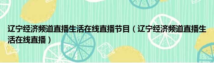 辽宁经济频道直播生活在线直播节目(辽宁经济频道直播生活在线直播)