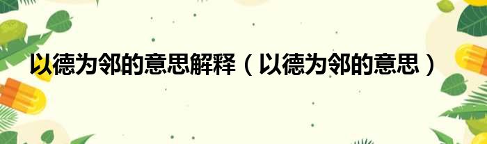 导读 大家好,今天小六子来为大家解答以下的问题,关于以德为邻的意思解释,以德为邻的意思这个很多人还不知道,现在让我们一起来看看吧!1、是以
