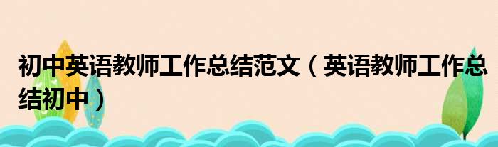 初中英语教师工作总结范文(英语教师工作总结初中)