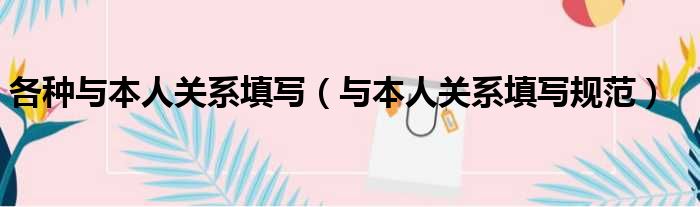 大家好,今天小六子来为大家解答以下的问题,关于各种与本人关系填写,与本人关系填写规范这个很多人还不知道,现在让我们一起来看看吧!