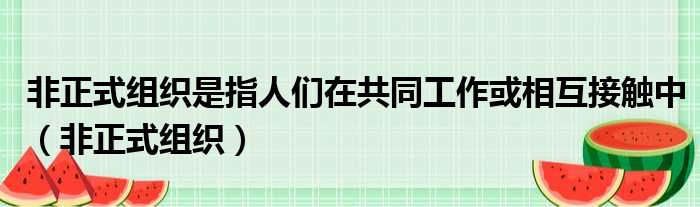 大家好,今天小六子来为大家解答以下的问题,关于非正式组织是指人们在共同工作或相互接触中,非正式组织这个很多人还不知道,现在让我们一起来看看吧!