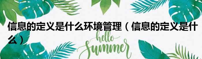 导读 大家好,今天小六子来为大家解答以下的问题,关于信息的定义是什么环境管理,信息的定义是什么这个很多人还不知道,现在让我们一起来看看吧