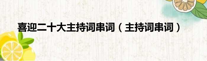 大家好,今天小六子来为大家解答以下的问题,关于喜迎二十大主持词串词,主持词串词这个很多人还不知道,现在让我们一起来看看吧!