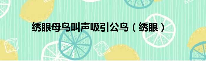 大家好,今天小六子来为大家解答以下的问题,关于绣眼母鸟叫声吸引公鸟,绣眼这个很多人还不知道,现在让我们一起来看看吧!