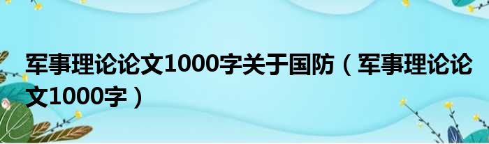 军事理论论文1000字关于国防(军事理论论文1000字)