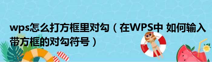 wps怎么打方框里对勾(在WPS中 如何输入带方框的对勾符号)