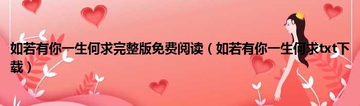 导读 大家好,今天小六子来为大家解答以下的问题,关于如若有你一生何求完整版免费阅读,如若有你一生何求txt下载这个很多人还不知道,现在让我们