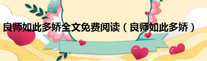 大家好,今天小六子来为大家解答以下的问题,关于良师如此多娇全文免费阅读,良师如此多娇这个很多人还不知道,现在让我们一起来看看吧!