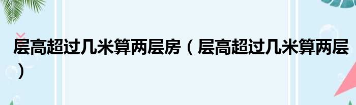 层高超过几米算两层房(层高超过几米算两层)