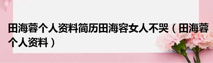 大家好,今天小六子来为大家解答以下的问题,关于田海蓉个人资料简历田海容女人不哭,田海蓉个人资料这个很多人还不知道,现在让我们一起来看看吧!