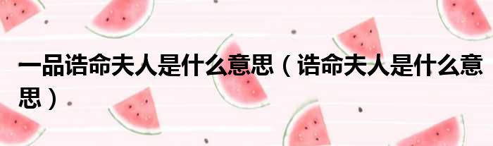 一品诰命夫人是什么意思(诰命夫人是什么意思)