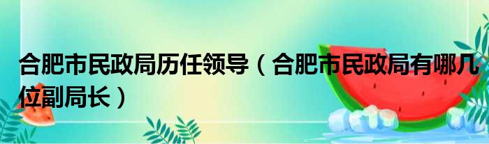 导读 大家好,今天小六子来为大家解答以下的问题,关于合肥市民政局历任领导,合肥市民政局有哪几位副局长这个很多人还不知道,现在让我们一起来
