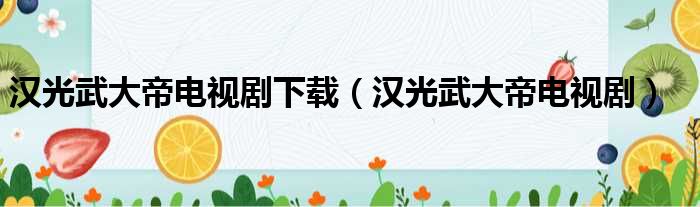汉光武大帝电视剧下载(汉光武大帝电视剧)