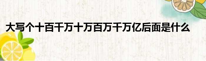 导读 大家好,今天小六子来为大家解答以下的问题,关于大写个十百千万十万百万千万亿后面是什么这个很多人还不知道,现在让我们一起来看看吧!1、
