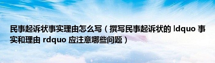 民事起诉状事实理由怎么写(撰写民事起诉状的 ldquo 事实和理由 rdquo 应注意哪些问题)