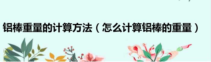铝棒重量的计算方法(怎么计算铝棒的重量)