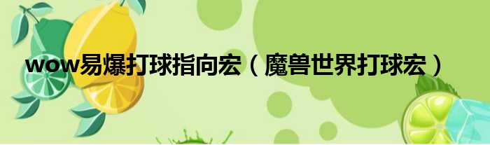 导读 大家好,今天小六子来为大家解答以下的问题,关于wow易爆打球指向宏,魔兽世界打球宏这个很多人还不知道,现在让我们一起来看看吧!1、 cast