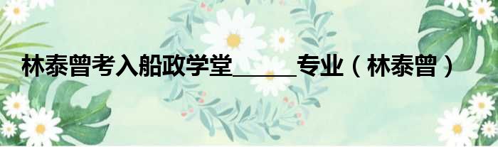 导读 大家好,今天小六子来为大家解答以下的问题,关于林泰曾考入船政学堂______专业,林泰曾这个很多人还不知道,现在让我们一起来看看吧!1、按