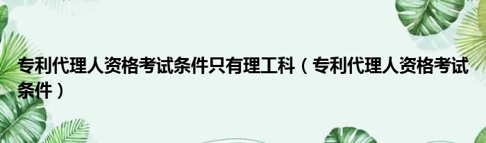 专利代理人资格考试条件只有理工科(专利代理人资格考试条件)
