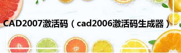 导读 大家好,今天小六子来为大家解答以下的问题,关于CAD2007激活码,cad2006激活码生成器这个很多人还不知道,现在让我们一起来看看吧!1、激活