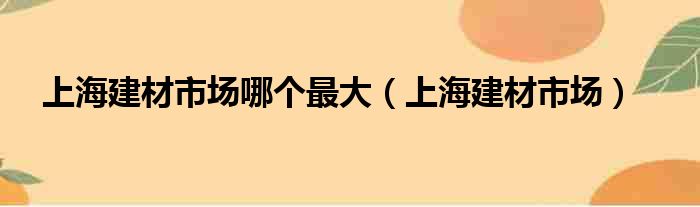 导读 大家好,今天小六子来为大家解答以下的问题,关于上海建材市场哪个最大,上海建材市场这个很多人还不知道,现在让我们一起来看看吧!1、上海