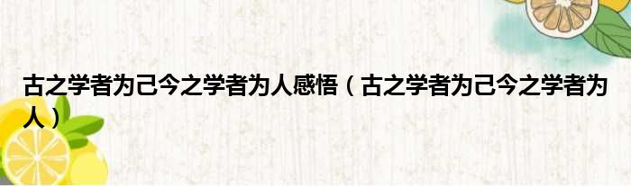 古之学者为己今之学者为人感悟(古之学者为己今之学者为人)