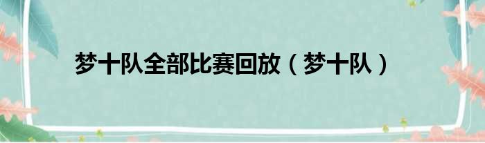 大家好,今天小六子来为大家解答以下的问题,关于梦十队全部比赛回放,梦十队这个很多人还不知道,现在让我们一起来看看吧!