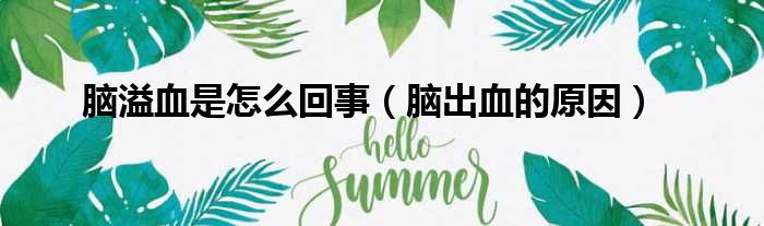 导读 大家好,今天小六子来为大家解答以下的问题,关于脑溢血是怎么回事,脑出血的原因这个很多人还不知道,现在让我们一起来看看吧!1、问题是这