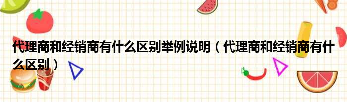 代理商和经销商有什么区别举例说明(代理商和经销商有什么区别)