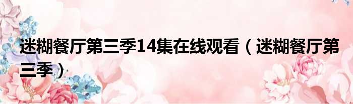 导读 大家好,今天小六子来为大家解答以下的问题,关于迷糊餐厅第三季14集在线观看,迷糊餐厅第三季这个很多人还不知道,现在让我们一起来看看吧