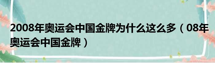 2008年奥运会中国金牌为什么这么多(08年奥运会中国金牌)