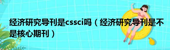 经济研究导刊是cssci吗(经济研究导刊是不是核心期刊)
