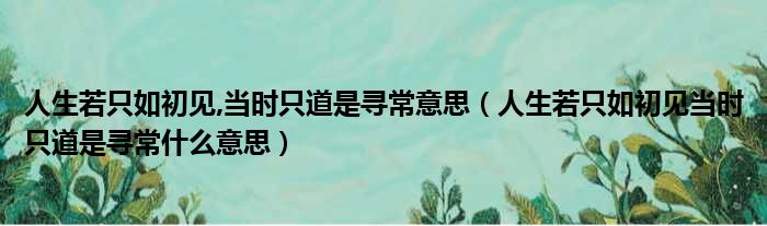人生若只如初见,当时只道是寻常意思(人生若只如初见当时只道是寻常什么意思)