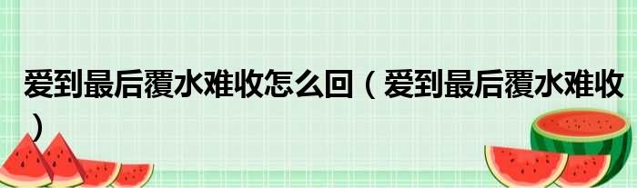 爱到最后覆水难收怎么回(爱到最后覆水难收)