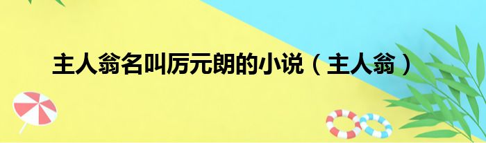 导读 大家好,今天小六子来为大家解答以下的问题,关于主人翁名叫厉元朗的小说,主人翁这个很多人还不知道,现在让我们一起来看看吧!1、主人翁意