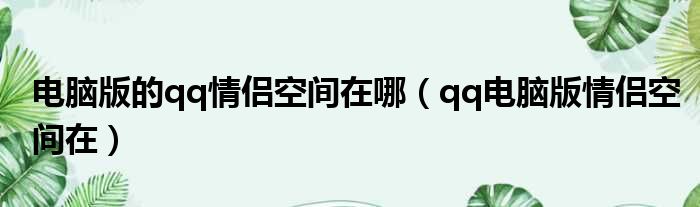 电脑版的qq情侣空间在哪(qq电脑版情侣空间在)