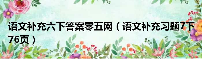 导读 大家好,今天小六子来为大家解答以下的问题,关于语文补充六下答案零五网,语文补充习题7下 76页这个很多人还不知道,现在让我们一起来看看