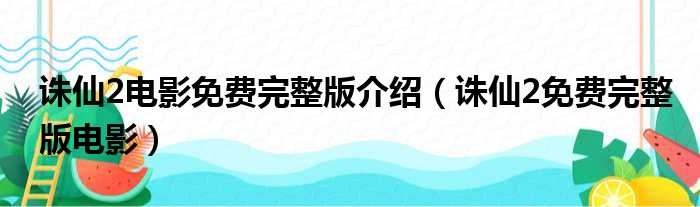 导读 大家好,今天小六子来为大家解答以下的问题,关于诛仙2电影免费完整版介绍,诛仙2免费完整版电影这个很多人还不知道,现在让我们一起来看看