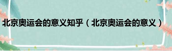 导读 大家好,今天小六子来为大家解答以下的问题,关于北京奥运会的意义知乎,北京奥运会的意义这个很多人还不知道,现在让我们一起来看看吧!1、