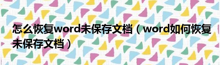 怎么恢复word未保存文档(word如何恢复未保存文档)
