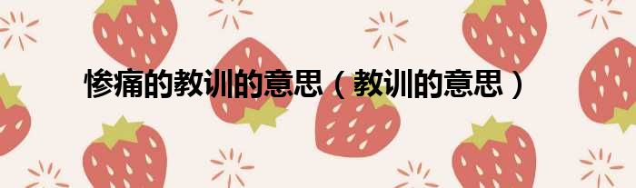 大家好,今天小六子来为大家解答以下的问题,关于惨痛的教训的意思,教训的意思这个很多人还不知道,现在让我们一起来看看吧!
