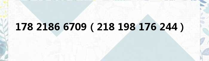 大家好,今天小六子来为大家解答以下的问题,关于178 2186 6709,218 198 176 244这个很多人还不知道,现在让我们一起来看看吧!
