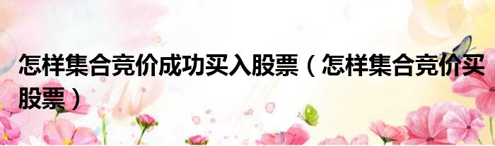 导读 大家好,今天小六子来为大家解答以下的问题,关于怎样集合竞价成功买入股票,怎样集合竞价买股票这个很多人还不知道,现在让我们一起来看看