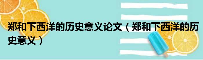 郑和下西洋的历史意义论文(郑和下西洋的历史意义)