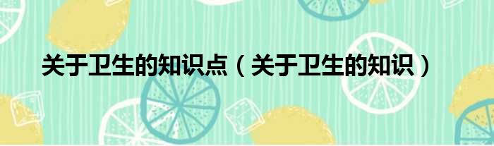 大家好,今天小六子来为大家解答以下的问题,关于关于卫生的知识点,关于卫生的知识这个很多人还不知道,现在让我们一起来看看吧!