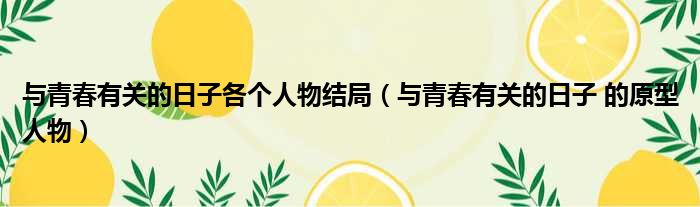 与青春有关的日子各个人物结局(与青春有关的日子 的原型人物)
