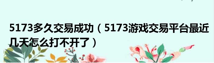 5173多久交易成功(5173游戏交易平台最近几天怎么打不开了)