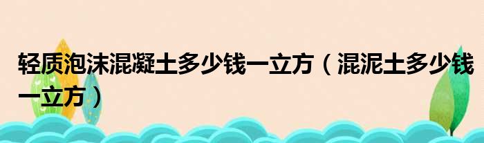 轻质泡沫混凝土多少钱一立方(混泥土多少钱一立方)