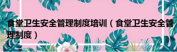 食堂卫生安全管理制度培训(食堂卫生安全管理制度)