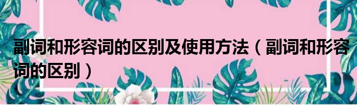 副词和形容词的区别及使用方法(副词和形容词的区别)